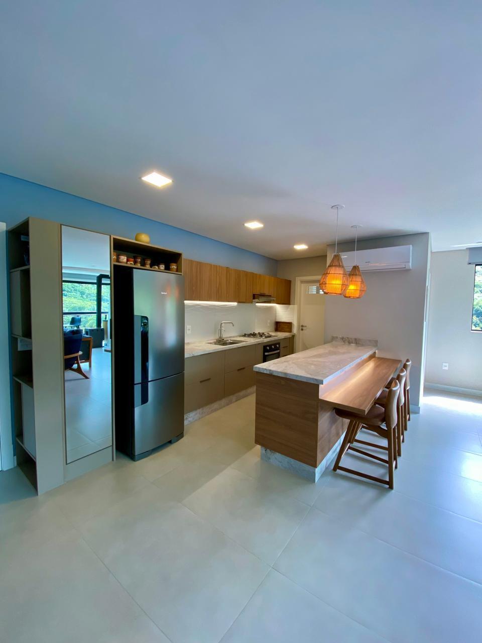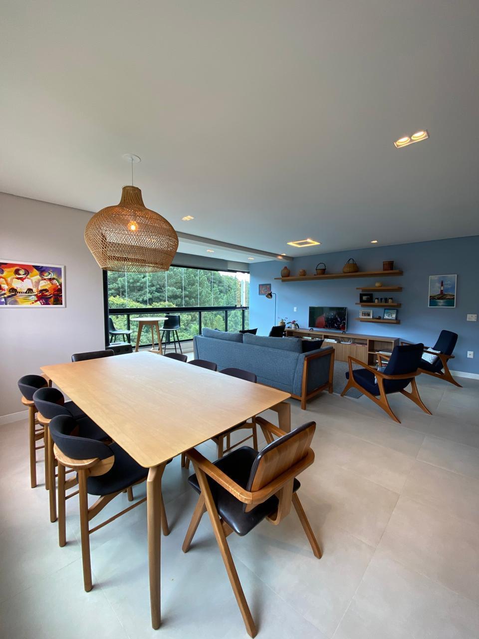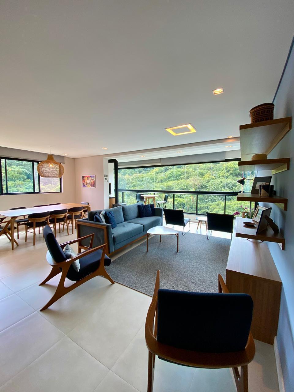 Apartamento à venda na Praia Brava, Itajaí/SC, no Edifício Colina da Brava, com 136,86 m² privativos, 3 suítes e 3 vagas individuais, com vista permanente para a mata, ótima iluminação e ventilação, a poucos metros da praia. Living integrado com espaço gourmet e churrasqueira a carvão, com móveis finamente planejados.